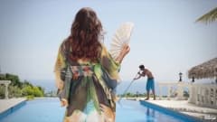 Num belo dia de sol esta mãe excitada pede auxílio ao tratador da piscina para a entreter e satisfazer sexualmente