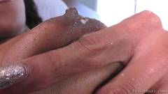A Sexy Saline Simone e Eli Hunter sugam a rola um do outro e se fodem a bunda. Esta cena gostosa acaba com ele ejaculando nas mamas da Saline!