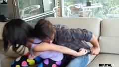 Esse cara é muito sortudo desde que seu pai tem uma filha de outra mulher e foi morar com eles. Ela é uma morena que sempre quer foder!