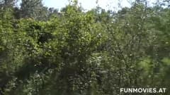 Ela é uma mulher linda e bonita que sabe perfeitamente que na floresta as coisas esquentam e o desejo de foder é muito maior.