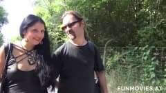 Esse cara adora comer uma boceta ao ar livre. Ele chupa e fode a morena, que se deita na toalha de piquinique e se masturba com um dildo enquanto ele filma