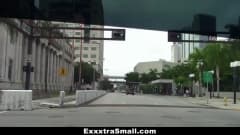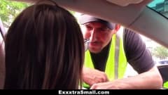 Ela não tem dinheiro para o estacionamento mas mostra os seios e já pode entrar. O cara tem sorte, vai ganhar o serviço completo e gozar na cara da garota!
