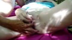 Esta gorda madura abre as pernas no meio do bosque porque quer que o cara lhe masturbe com seus dedos e depois com um vibrador.