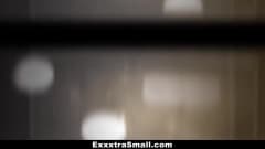 Loira magra fode em uma cama muito grande