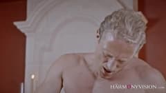 Uma mulher bonita em lingerie sexy e chique é divinamente fodida por um cara que enfia seu pau na sua buceta e na sua bunda.