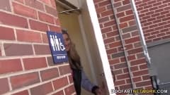 Alysha não sabe de quem é este pau preto, ela só quer chupar ele e foder de um buraco na parede!