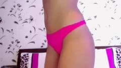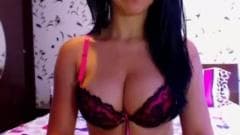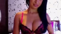 Uma morena peituda muito gata, de calcinha sexy, quer mostrar na câmera que consegue dar ao seus fãs uma boa ereção apenas mostrando as mamas.