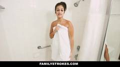 A meia-irmã é penetrada durante o banho.
