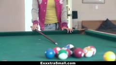 Esta é uma escolha difícil para esta jovem loira que gosta de jogar bilhar, mas também gosta de sexo com seu adversário.