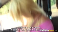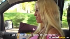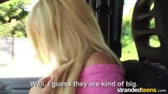 Uma loira sexy ganha carona e tem uma conversa quente com o motorista. Ela mostra os peitos antes de chupar um belo pau e ser fodida dentro do carro!