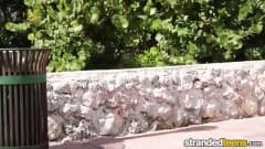 A gostosa teve a bolsa roubada e aceita a carona de um cara que a atrai. Ele chupa os seios dela e ela cai de boca no pau dele e fica toda fodida!