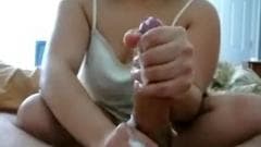 Esta Milf gosta muito de masturbar seu homem e dar-lhe uma boa dose de prazer com as mãos, batendo uma punheta realmente saborosa.
