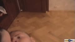 Ela está em casa com o namorado e está com muita vontade de transar. Então ela seduz seu homem sentando nele e dando seus seios para ele chupar.