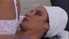 Enfermeiras lésbicas bi-sexuais chupando pau