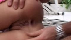 Hoje você vai ver como esta mulher gosta de chupar os paus de seus vizinhos enquanto outro penetra sua bunda faminta no quintal da sua casa.
