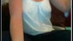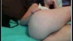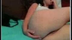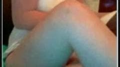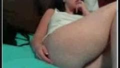 Ela está sentada na cama com seu computador na frente dela, pois ela está em um chat de vídeo muito quente em que ela vai mostrar seu corpo !