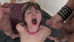 Gina Gerson é essa loira magnífica que adora sexo BDSM e é por isso que dois estranhos a amarram e a forçam a chupar seus paus