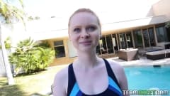 A ruivinha Ruby Red montando na rola do professor de natação!