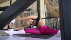 Candee Licious fica deliciosa de leggings transparentes. Ela está na academia, e um cara vê e se aproxima para tocar, chupar e foder sua bocetinha!