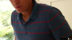 A garota não fica feliz em vê-lo se masturbar com a sua calcinha, mas ele quer quer só a calcinha, ele quer encher sua boca e sua boceta!