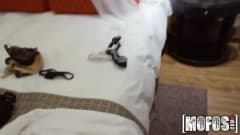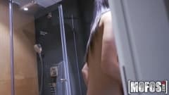 Essa jovem vagabunda toma banho e veste sua lingerie sexy para chupar o pau grande e grosso do namorado, e ser fodida na buceta!