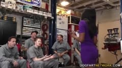 Ela é uma negra encarregada de dar aulas de mecânica para alguns homens que realmente não querem saber nada sobre motores, mas sim sobre foder sua bunda!