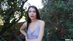 Esta novinha safada passa a noite fora sem a permissão dos pais. Seu meio irmão vai protegê-la mas pede que ela pague um boquete e para fodê-la!
