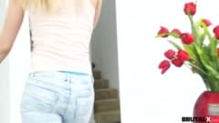 Um pianista está tocando seu instrumento quando uma loira chega para reclamar. Ele rasga a blusa dela, chupa e fode sua boceta e goza na cara da garota!