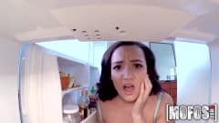 Ela está se masturbando quando descobre que alguém está assistindo a siririca. O dono da câmera chega e convence a garota a relaxar chupando e fodendo!