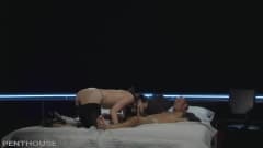 Essa garota negra de cabelos compridos não solta o pau desse homem. Veja como você não quer perder uma gota de leite que pode sair.