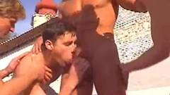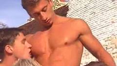 Alexander Steel, Carson Michaels, Pietro White e Bastien Tottiet gostam de chupar a rola uns dos outros ao sol