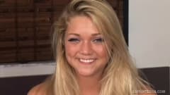 Loira muito jovem faz sexo em sua cama! Jessie Andrews, uma loira de mamas pequenas recebe um grande golpe de esperma em seu rosto
