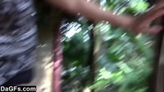 Nesse espaço ao ar livre com vários níveis, as posições se sucedem para este casal onde o fellatio e a porra estão no centro das atenções.