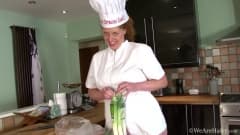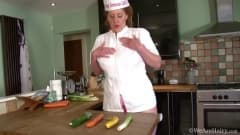 Francesca May é uma cozinheira pervertida que tempera legumes com o suco de sua buceta peluda. Não perca como se masturba com vegetais.