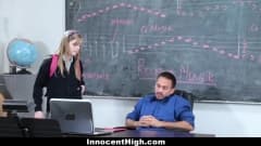 Ela precisa passar na aula de música. O professor ensina-a a dedilhar metendo os dedos na sua boceta. Ele vai lambê-la para estar relaxada para a trepada!