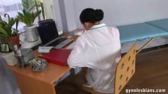 Uma médica lésbica penetrando sua paciente