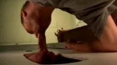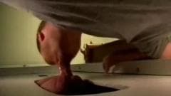 Esse cara fica animado quando ele vê um buraco na parede e hoje ele tem sorte porque ele consegue um pau para chupar através disso!