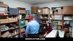 Depois de ser apanhada roubando, a garota é levada para a sala de segurança, onde os dois guardas vão fazer uma proposta: fode e chupa os dois ou prisão!