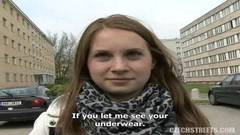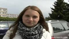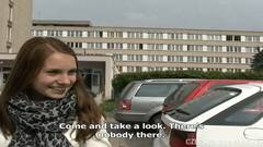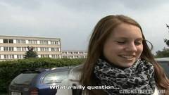 Esta jovem é uma tcheca que precisa de dinheiro e esse completo estranho oferece a ela no meio da rua. Ela aceita e fode com ele.