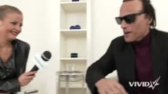A fabulosa Candy tinha um microfone na mão e estava entrevistando-o, mas então ela levou seu grande pênis à boca!