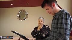 Essa vovó está se divertindo muito chupando um pau e aproveitando cada centímetro dele. Nós adoramos vê-la.