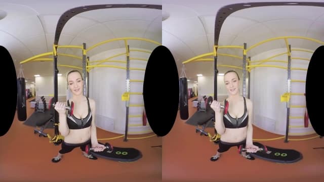 Uma garota se exercita e se estica intensamente no ginásio, ela se despe e se masturba em frente à câmera e tudo para você - uma cena em VR!