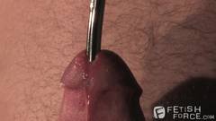 Doc Benway tem um fetiche por sondar seu pau duro com uma vara de metal. Ele claramente tira imenso prazer dessa punheta safada.