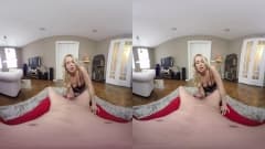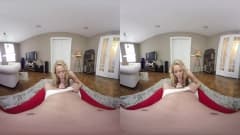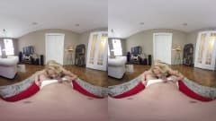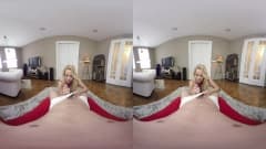 A loira em realidade virtual lambe e chupa o pau de uma forma incrível
