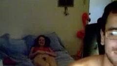 Esse cara pensou que sua webcam não funcionava, mas ele conseguiu pô-la a funcionar antes de foder sua nova moça em seu próprio quarto.