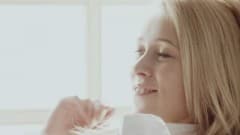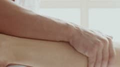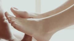 Uma loira relaxa seus pés e se prepara para o pênis deste homem. Ela coloca o pênis dele dentro dela e ela está na cadeira.
