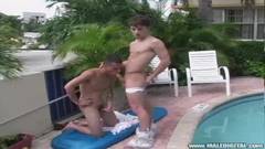 Beau Green está com o amante ao ar livre, ao lado da piscina, desfrutando de boquete e anulingus, não perca isso