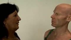 Uma morena madura lambe a roseta de seu marido antes de empurrar seu pênis para dentro.