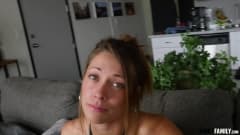 Essa loira fofa é gravada pelo meio-irmão enquanto esfrega sua buceta no banheiro. O cara a chantageia para desfrutar dessa deliciosa buceta.