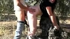 Este casal amador muito excitado se filma dando uma tranza num belo dia de sol contra uma arvore no meio da mata